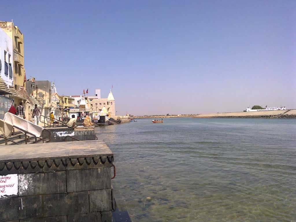 Gomti Ghat is situated at the mouth of Gomti River, a tributary of Holy Ganges, the most sacred river for all Hindus. The river originates in the Himalayan ranges of Nepal, flows down across many Indian states and finally empties into the Arabian Sea here. Gomti Ghat also has a great religious and mythological significance. According to myths River Gomati is the daughter of Sage Vashishta and her waters are powerful enough to purge one's mortal sins. Thus pilgrims make it a point to bathe in River Gomti and they usually take their holy dip into the Gomati Kund, the point of confluence of River Gomti and Arabian Sea.